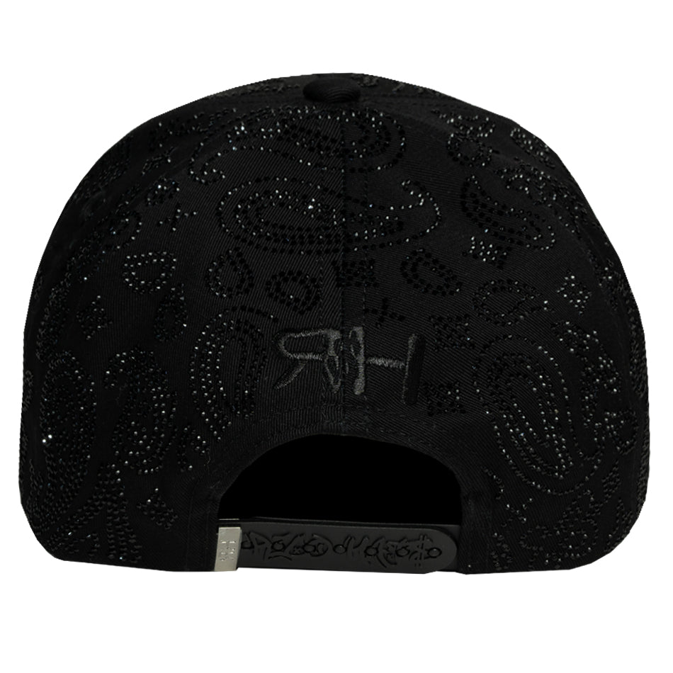 Visera de gamuza, paneles de algodón, cristales negros con un diseño en toda la gorra, algo elegante y para darse a notar.
